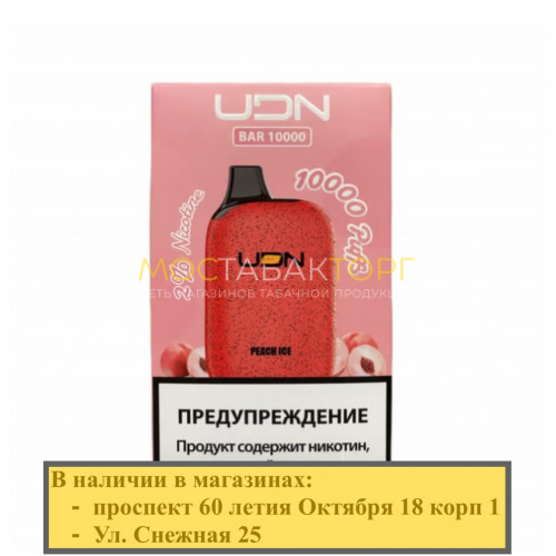 Электронная сигарета UDN BAR 10000 Peach Ice (УДН Бар Персик Лёд)