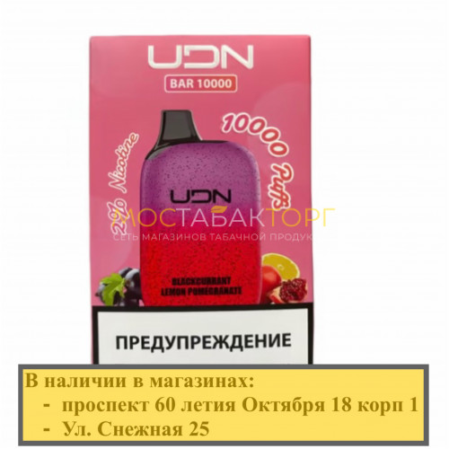 Электронная сигарета UDN BAR 10000 Blackcurrant Lemon Pomegranate (УДН Бар Чёрная Смородина Лимон Гранат)