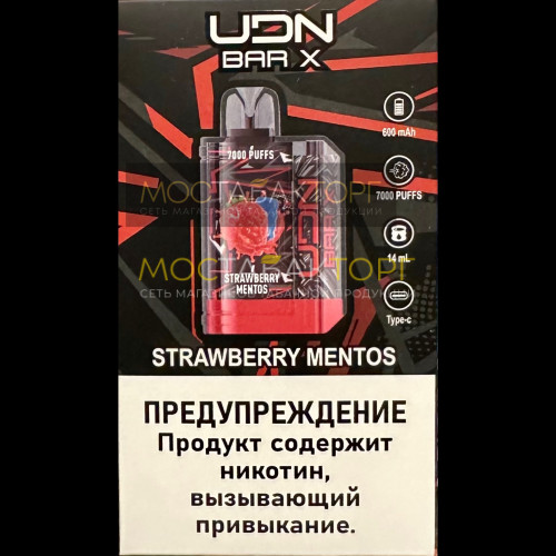 Электронная сигарета UDN BAR X gen 2 Strawberry Mentos (УДН Бар Х Клубничный Ментос) 7000 затяжек