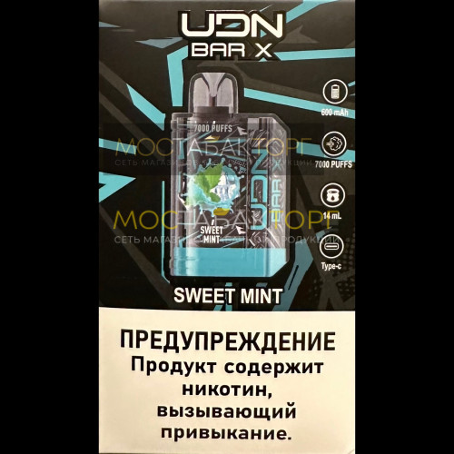 Электронная сигарета UDN BAR X gen 2 Sweet Mint (УДН Бар Х Сладкая Мята) 7000 затяжек
